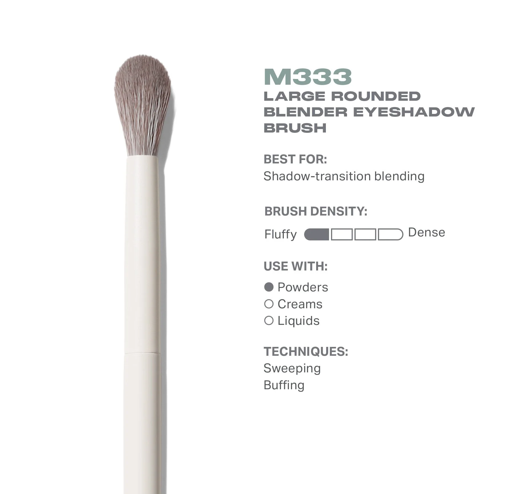 The M333 Large Rounded Blender Eyeshadow Brush is your transition blender. Use it on your lids and in your creases with back-and-forth sweeping motions to effortlessly diffuse color for seamless effects.